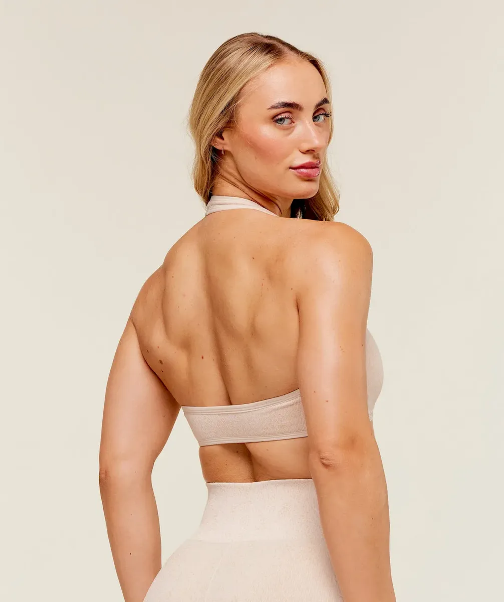 - Flattering square neckline & halterneck straps