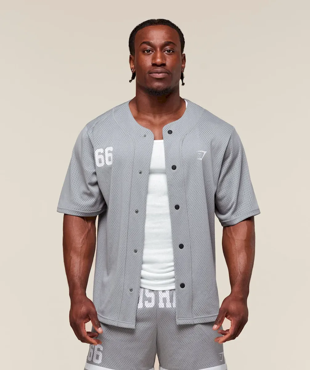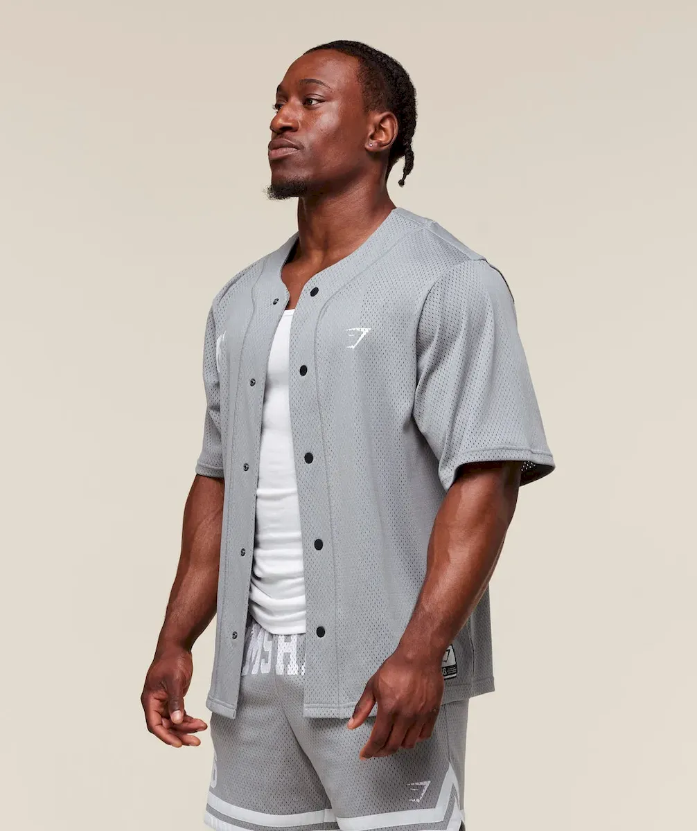 • Classic varsity-style button up shirt